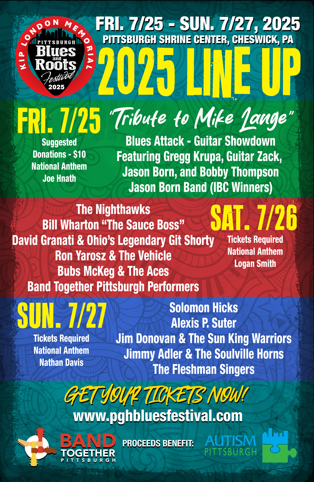 Doors open at 6:30 pm;Tickets online - $5;Tickets at the door - $7 - All proceeds from the night's performance will go to Band Together Pittsburgh!!